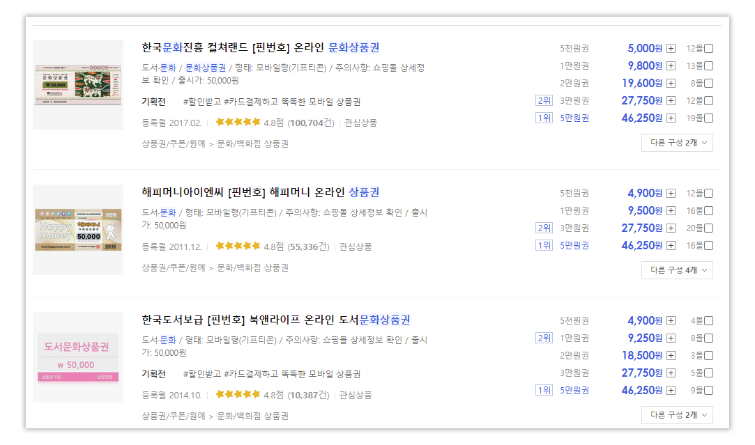 1. 상품권류를 다나와 같은 상품권 구매가 가능한 사이트에서 구매한다.