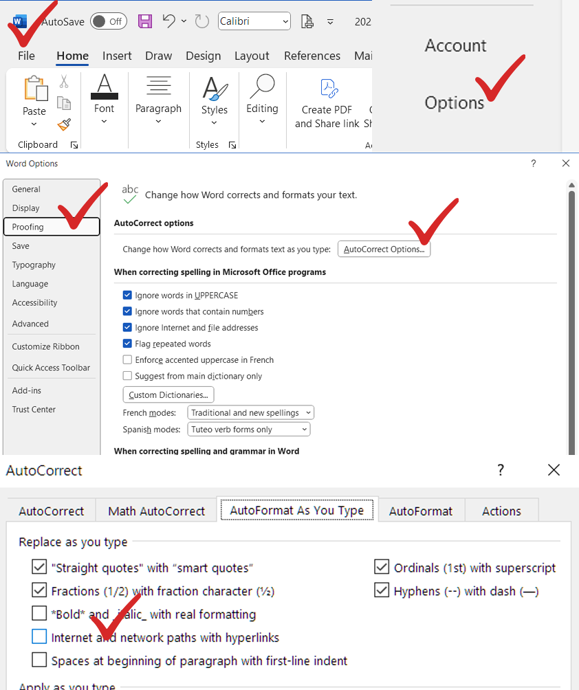 마이크로소프트 워드에는 기본적으로 링크를 붙여 넣으면 자동으로 하이퍼링크가 활성화된다. 아래 방법으로 자동으로 활성화되는 링크를 붙여넣기 하더라도 "하이퍼링크가" 연결되지 않은 상태로 인터넷상에서 가져온 주소를 그대로 붙여넣기 하거나 편집할 수 있게 된다.