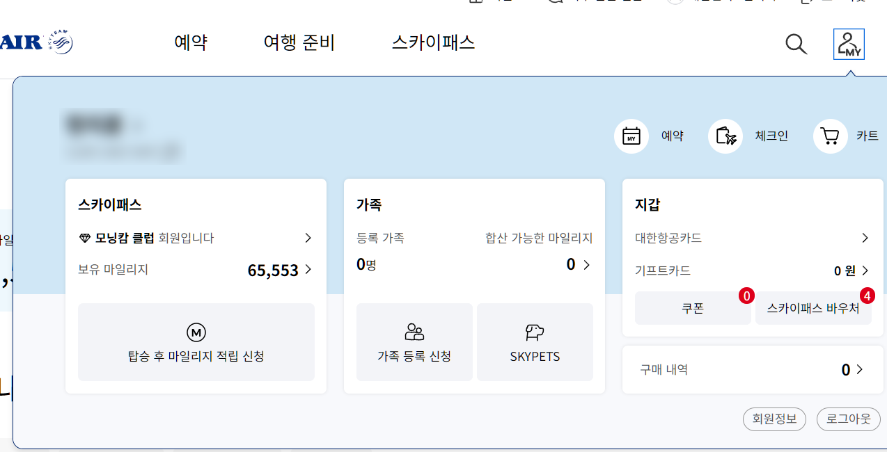 대한항공 마일리지 적립하기