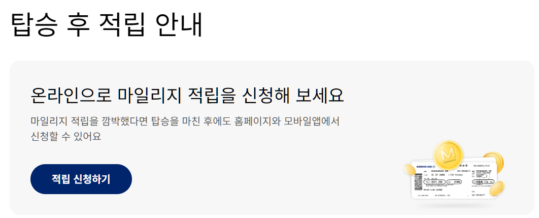 2. 간혹 마일리지 적립을 하지 못했거나 제휴항공사를 이용한 경우에는 대한항공 사이트에서 진행 가능하다.