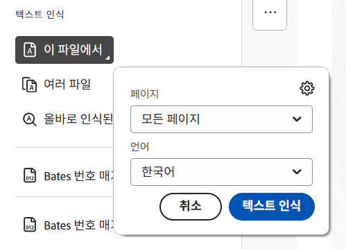 어도비 Acrobat PDF Viewer에서 OCR을 돌리려고 하다보면 아래와 같은 오류가 발생한다.