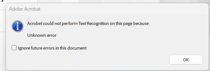 [Acrobat could not perform text recognition on this page because: unknown error 해결 방법]